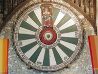 Замок Камелот, где расположен Круглый стол, был устроен в Честере на месте недавно найденного древнеримского амфитеатра, полагают историки. Круглый стол не был, собственно, предметом мебели - скорее это было капитальное сооружение из дерева и камня, установленное в центре амфитеатра. Там могло собраться более тысячи человек. Местные дворяне рассаживались за Круглым столом в первом ряду, а люди попроще - на каменных скамьях, установленных в задних рядах амфитеатра.