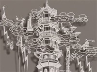 Бови создает интересные поделки, вырезая из рисовой бумаги сложные узоры. Затем креатив из бумаги наклеивается на шелковую подложку.