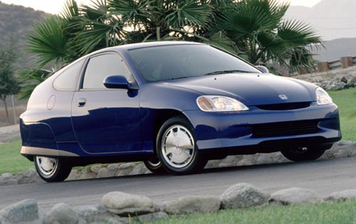 Спустя два года после выпуска оригинального Toyota Prius появился заклятый противник бестселлера – Honda Insight. Автомобили по сей день являются прямыми конкурентами. Гибридный Insight можно рассматривать как ответ компании Honda на выпуск Prius, но автомобили довольно значительно разнятся по техническому содержанию. В Insight использован 3-цилиндровый литровый бензиновый двигатель мощностью 68 лошадиных сил. Скромный 13-сильный электромотор расположился непосредственно на коленчатом валу ДВС. Это типичный представитель параллельного гибридного привода. Но о классификации чуть позже. Бензиновый мотор Honda Insight изготовлен из алюминия, титана и прочных видов пластика, что позволило добиться максимального снижения веса: 838 кг в минимальной комплектации. Производитель предусмотрел два типа трансмиссии: 5-скоростная механическая и вариаторная. Ездить без использования ДВС Insight не умеет, зато может похвастаться завидной экономичностью: 3,7 литра на 100 км в смешанном цикле. Это меньше, чем у любой модификации Prius. Более того, это официально самый скромный расход для серийного автомобиля с бензиновым двигателем, когда-либо производимого в США. В чем секрет успеха? В рекуперативной тормозной системе, запасающей энергию во время отрицательного ускорения. Она впоследствии используется при разгоне, позволяя основному двигателю работать не в полную мощь. Дополнительно Honda Insight оснащен системой «стоп/старт», так что во время простоя на запрещающий сигнал светофора потребление топлива прекращается. Еще одна интересная особенность гибридного автомобиля: версия с механической КПП оснащена индикаторами оптимального момента смены передачи. Что до необычного облика хэтчбека, то мы искренне надеемся в его исключительно утилитарном происхождении, все же низкий коэффициент аэродинамического сопротивления играет не последнюю роль в снижении потребления топлива.