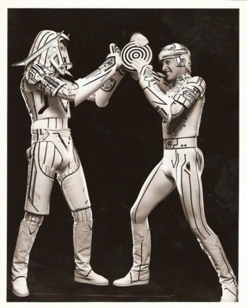 Трон (1982) Девид Уорнер и Брюс Боксляйтнер дурачатся в костюмах.