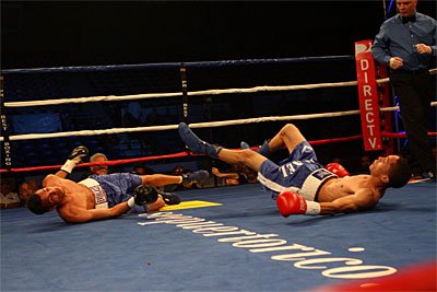 Боксеры одновременно отправили друг друга в нокдаун (фото)
