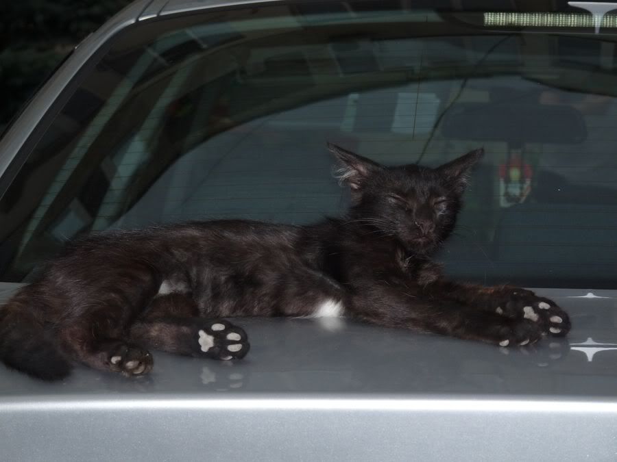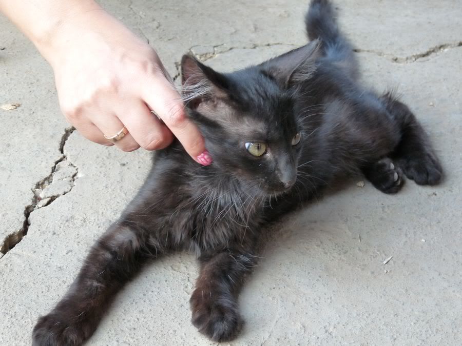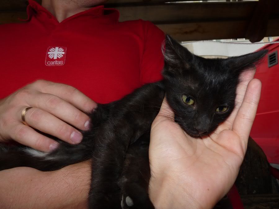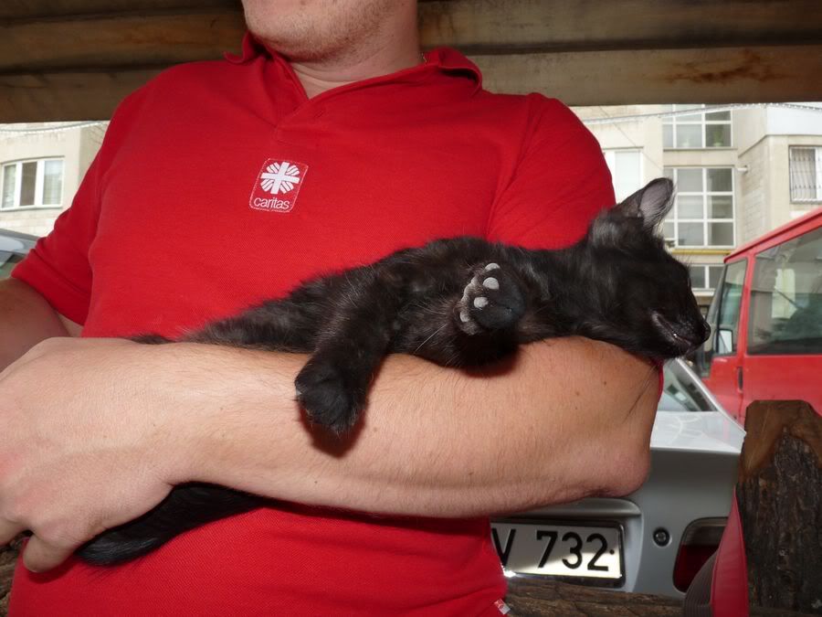 Есть замечательный.. трехмесячный.. чорный Котенок.. с белым пятнышком на пузе.. но у него нету дома..(
