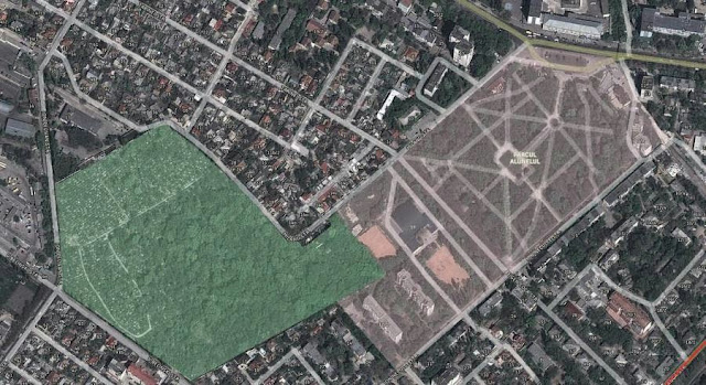 Схема с границами кладбища. Вполне вероятно, что оно граничило непосредственно с Мунчештским кладбищем (выше по карте). Благоустройство кладбища продолжалось и в годы Второй Мировой Войны. В это время захоронения на нём возобновили, на кладбище нашли последний приют солдаты, погибшие в госпиталях Кишинёва (советские, немецкие, румынские).