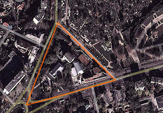 Приблизительные границы старого еврейского кладбища на снимке нашего времени. Сейчас на месте старого еврейского кладбища находятся посольство Румынии, высотный жилой дом, библиотека, бензозаправка и др строения.