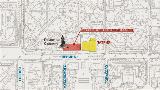 Схема, показывающая местоположение захоронений, выполнена пользователем форума"Мой город Кишинёв" nik (на схеме также указан памятник Сталину, который стоял у входа в Парк):