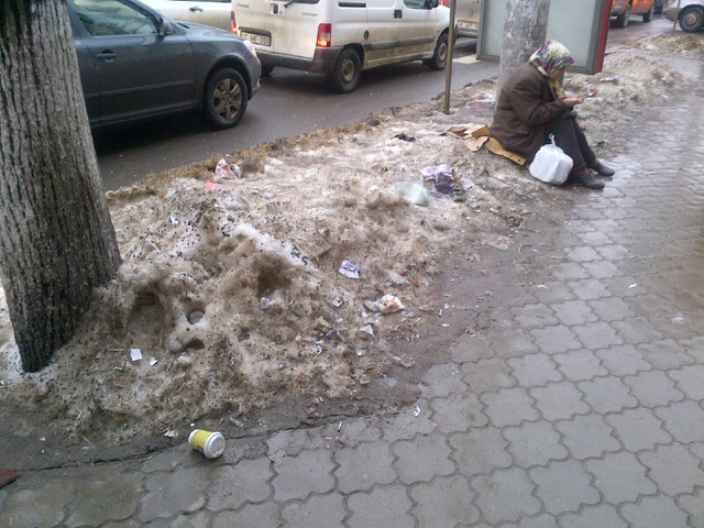 Столица буквально утопает в грязных кучах снега, мусоре и огромных лужах.