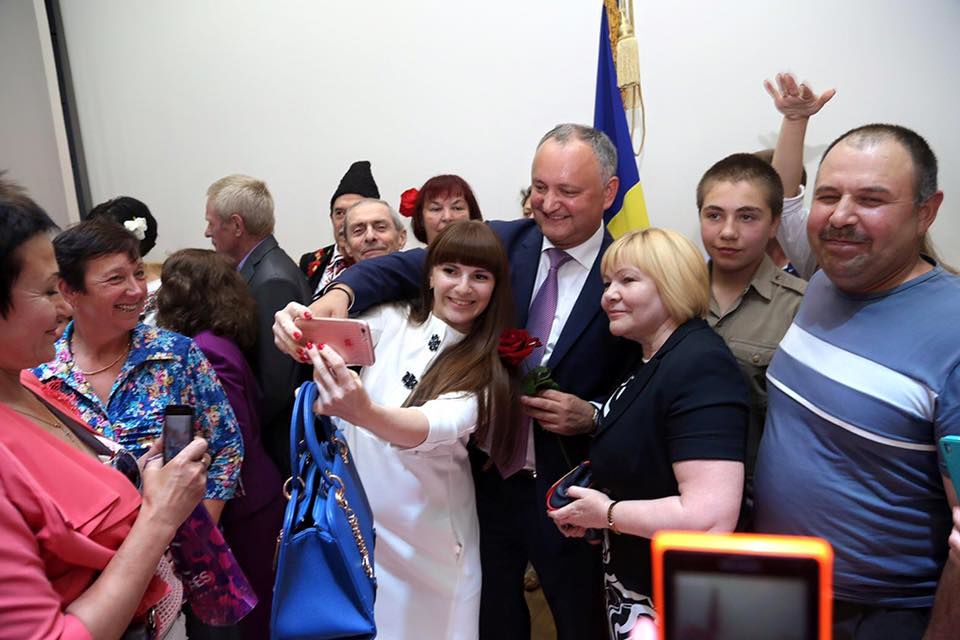На встречу с президентом Молдовы пришла и глубоко беременная молодая женщина. Довольная общением, она подошла к Игорю Додону и попросила сфотографироваться. Глава государства согласился. Радостная молдаванка с улыбкой позировала рядом с ним.