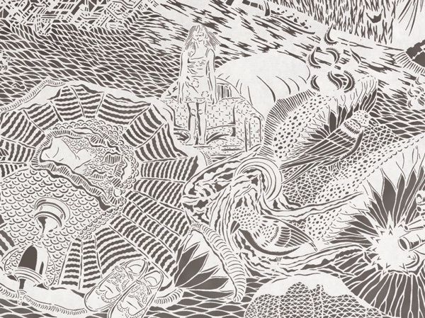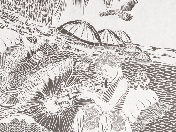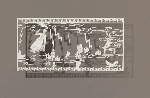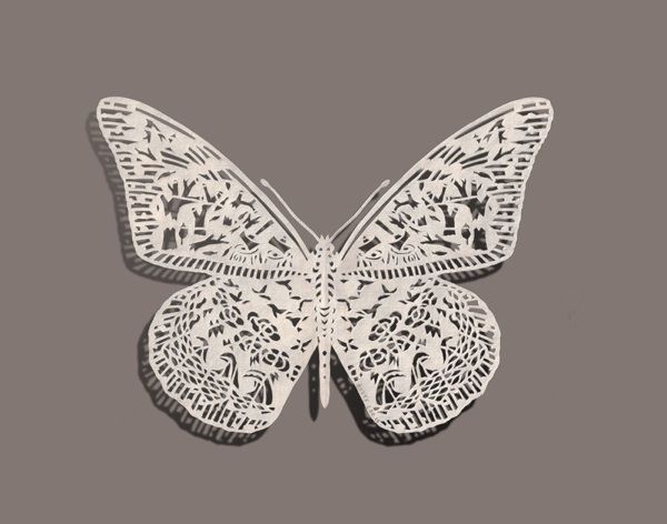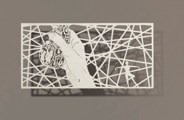 Бови создает интересные поделки, вырезая из рисовой бумаги сложные узоры. Затем креатив из бумаги наклеивается на шелковую подложку.