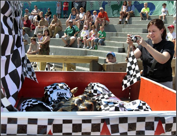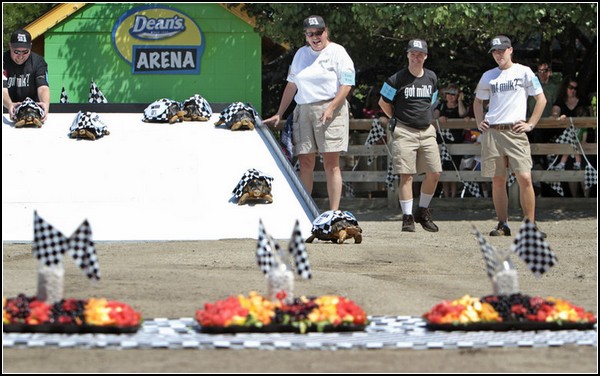 Люди отчего-то думают, что черепахи - медлительные животные. Между тем древнегреческий мудрец Зенон утверждал, что черепаху не под силу догнать даже Ахиллесу. Скоростной потенциал панцирных существ невероятен, и они полностью реализуют его на соревнованиях Зоополис-500, проходящих в американском городе Индианаполисе. Черепашьи бега - это серьезно!