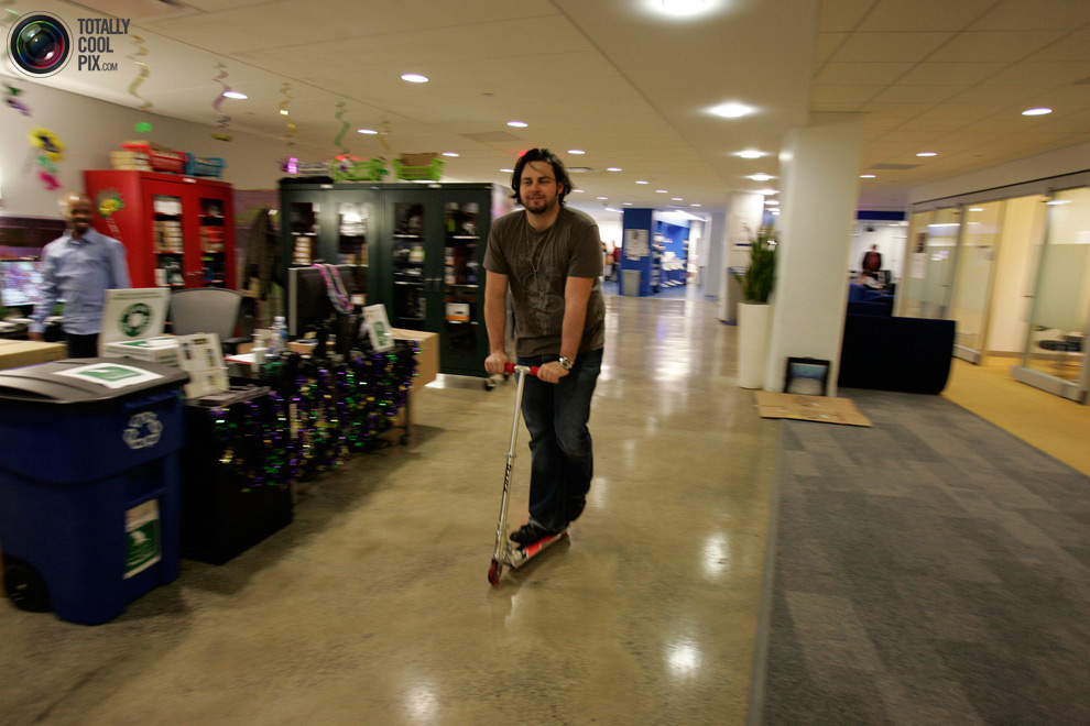 14. Сотрудник едет на самокате по коридорам нью-йоркского офиса компании «Google» 10 марта 2008 года.![]()