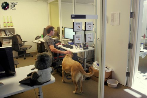 8. Сотрудник со своей собакой в своем кабинете 3 марта 2008 года. Снимок сделан в штаб-квартире компании. Первые четыре здания комплекса "Googleplex" были изначально построены для компании Silicon Graphics в 1997 году; в 2003 году Google взял их в аренду, а в 2006 выкупил вместе с другой собственностью Silicon Graphics (общая стоимость сделки составила 319 миллионов долларов).![]()