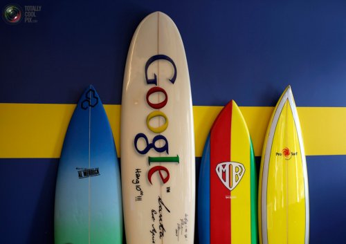 1. Доски для серфинга у стены в офисе компании «Google» в Санта-Монике, штат Калифорния 11 октября 2010 года. Google Inc. - американская транснациональная публичная корпорация, инвестирующая в интернет-поиск, облачные вычисления и рекламные технологии.![]()