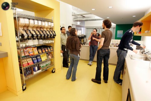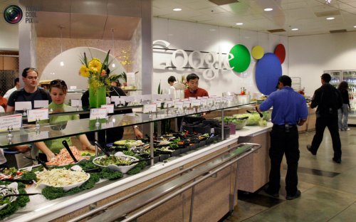 3. 3 марта 2008 года сотрудники выбирают блюда в одном из пятнадцати кафе, расположенных на территории штаб-квартиры компании в Маунтин-Вью, штат Калифорния. Питание для сотрудников компании - бесплатное.![]()