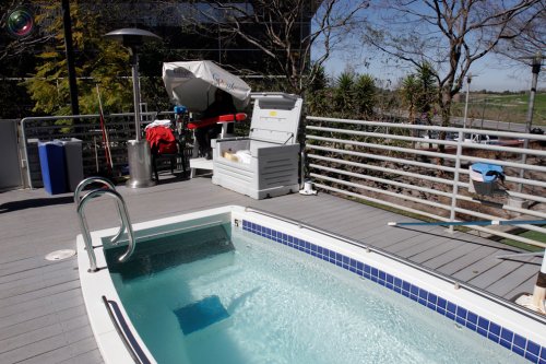 7. Плавательный бассейн, возле которого постоянно дежурит спасатель. Снимок сделан 3 марта 2008 года в штаб-квартире компании - "Googleplex". Название является контаминацией слов Google — названия компании — и complex (с англ. группа зданий), а также отсылает к названию числа гуголплекс, равного десяти в степени гугол (то есть равного 1010100).![]()
