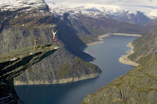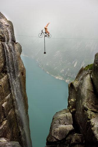 Эскил Роннингсбакен совершенствовал свои способности к балансировке с раннего детства. И теперь он запросто развлекает народ, балансируя и дела стойки на голове на краю горных обрывов…