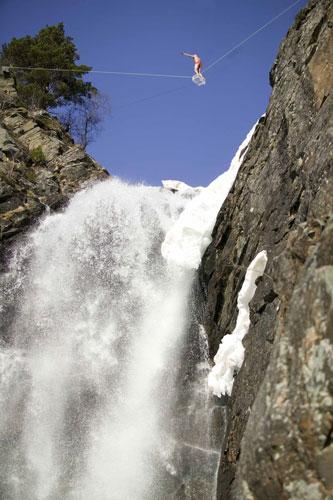 …на канате над водопадом…
