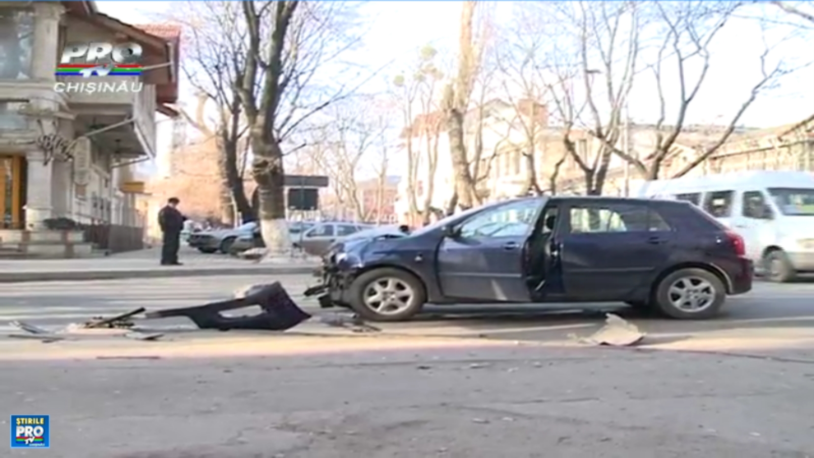 Doua automobile de model Toyota s-au ciocnit la intersectia strazilor Mihai Eminescu si 31 August. In urma impactului unul dintre automobile a fost proiectat pe trotuar si a intrat intr-o cladire. Un trecator a ajuns pe capota masinii.