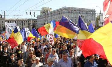 В акции сторонников объединения с Румынией приняли участие не более 2000-3000 человек. Фото: jurnal.md Вчера в Кишиневе прошел Марш объединения, организованный Гражданским движением «Акциуня – 2012» и Советом объединения. Марш начался у здания Академии наук РМ и завершился у «Зеленого театра» в парке «Валя морилор».