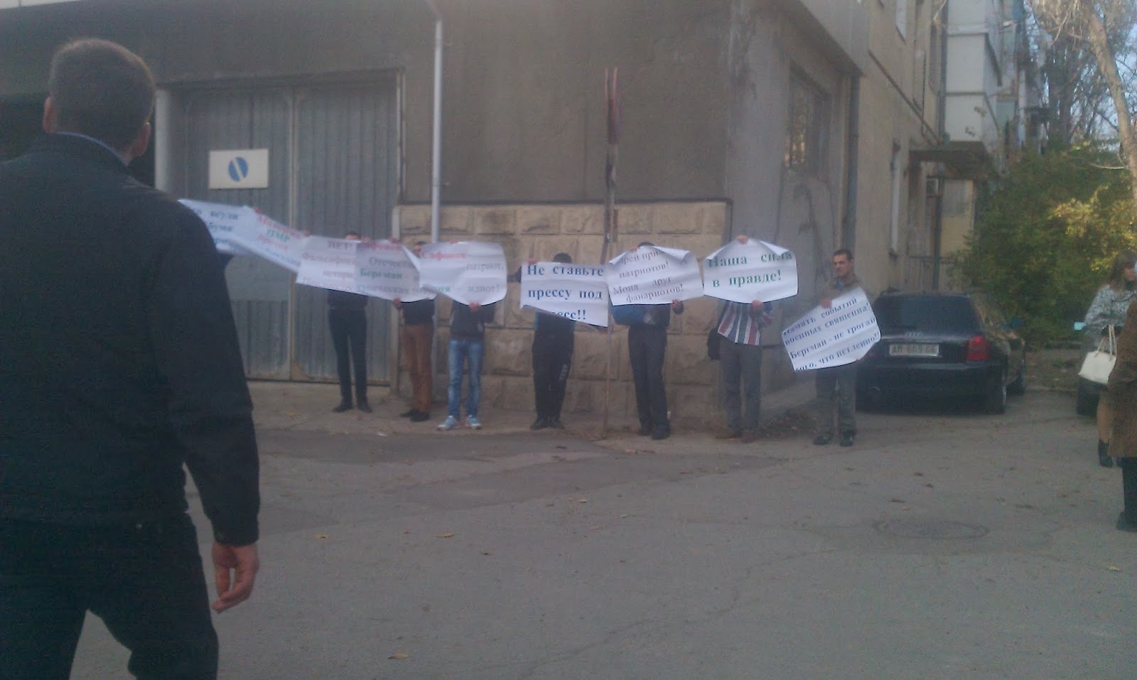 Очевидцы этой акции утверждают, что все длилось не более минуты. Молодые люди, их и было то не более 8 человек, начали разворачивать плакаты: «Бергман – вон из Приднестровья», «Бергман – не позорь честь защитников Приднестровья», «Бергман – враг Приднестровья». Однако в тот же момент из здания суда вышли сотрудники правоохранительных органов нашего «демократического» государства и жестко провели задержание протестующих. Как говорится без шуму и пыли. Как мы узнали позже, их разделили на 2 группы и увезли в службу безопасности президента (СБП) и КГБ. «Демократия» в действии.